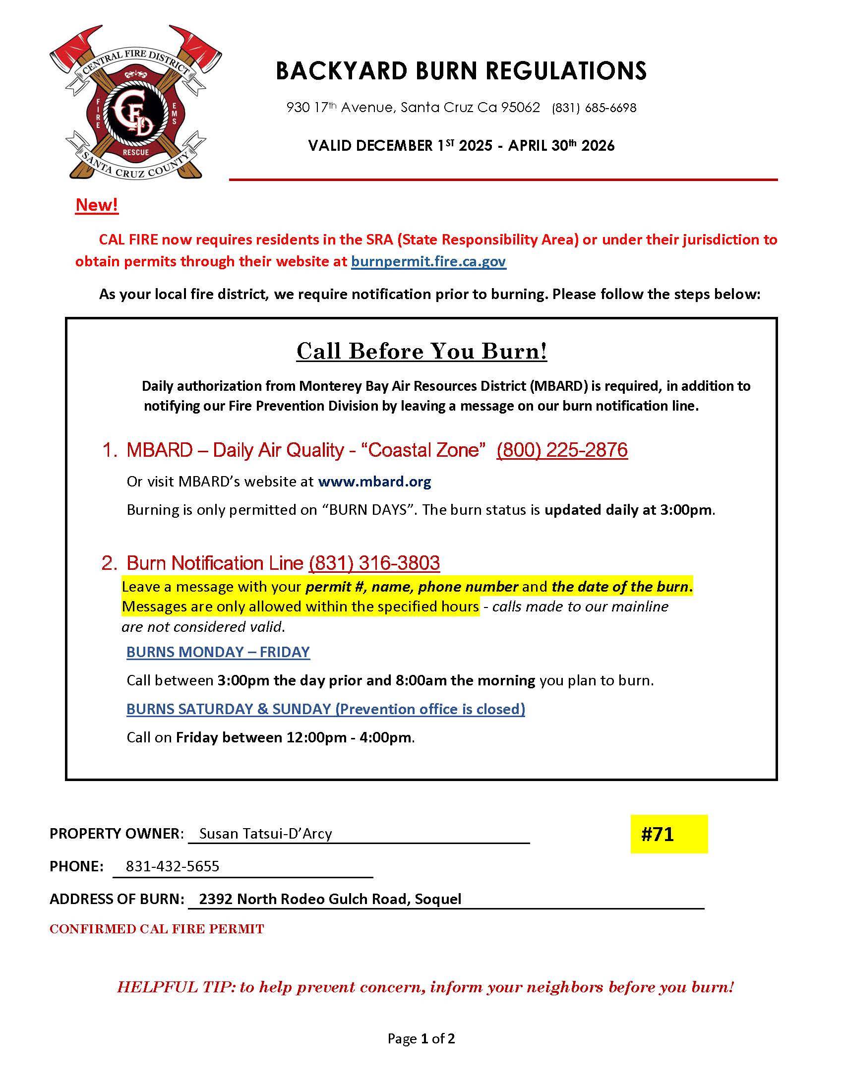 NRG Firewise residents need to apply for the Central Fire and the CalFire Burn Permits if you live in the SRA. If you live in the LRA, you only need the Central Fire Permit. It’s easy to do!